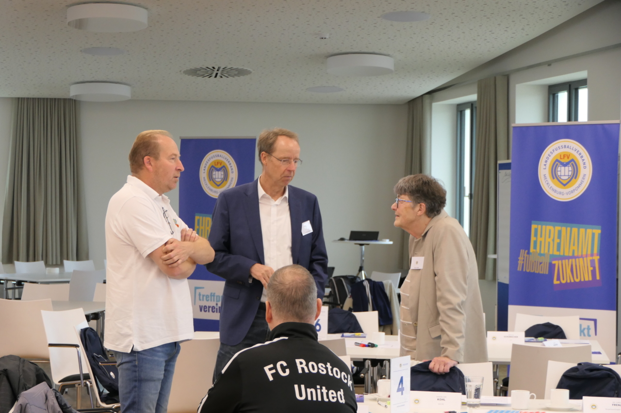 Er und sein Team hatten die Ergebnisse der Umfrage genutzt, um den Fachtag inhaltlich vorzubereiten. Neben Podiumsgesprächen standen am 11. Oktober in der neu gebauten Sportschule in Warnemünde auch drei Arbeitsphasen auf dem Programm: An runden Tischen konnten die Vereinsvertreterinnen und -vertreter mit LFV-Verantwortlichen zu folgenden Themen ins Gespräch kommen: